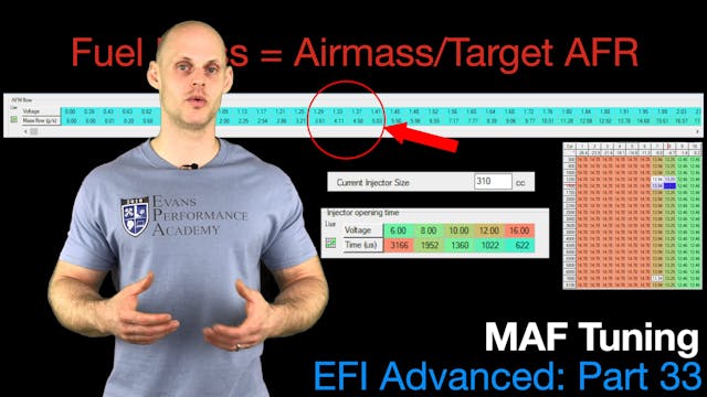 EFI Advanced Part 33 takes a look at how tune fuel delivery with a MAF sensor. We explore the core concepts in MAF tuning such as MAF rescaling, fuel trim tuning, and WOT tuning. Other topics covered are common issues when tuning with a MAF sensor.